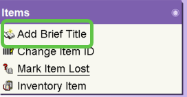 - From the CIRC toolbar, click on the Add Brief Title wizard, located in the Items Wizard Group.