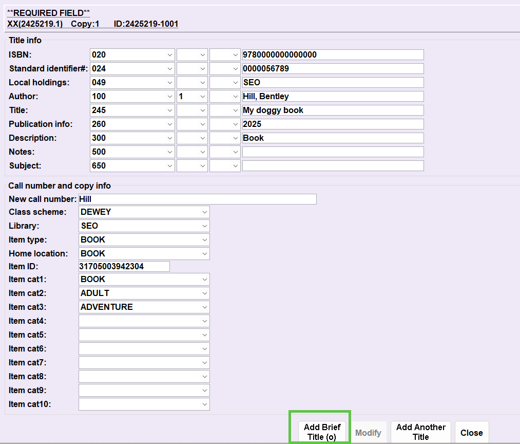 If you are adding a Kit, you may need to further edit your record using Modify Title. Please contact SEO for further assistance and guidance.