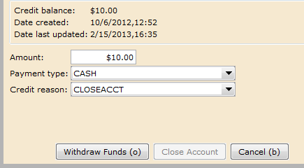 - Choose Yes to close the Users Credit Account.