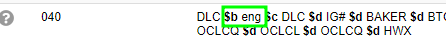 2. The 040 subfield b tag indicates the language of the record.