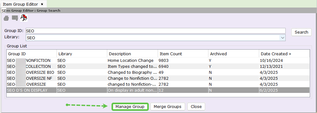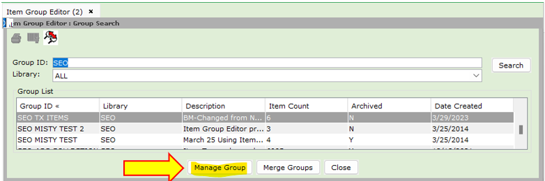 - Click on the Item/Group Search Helper.