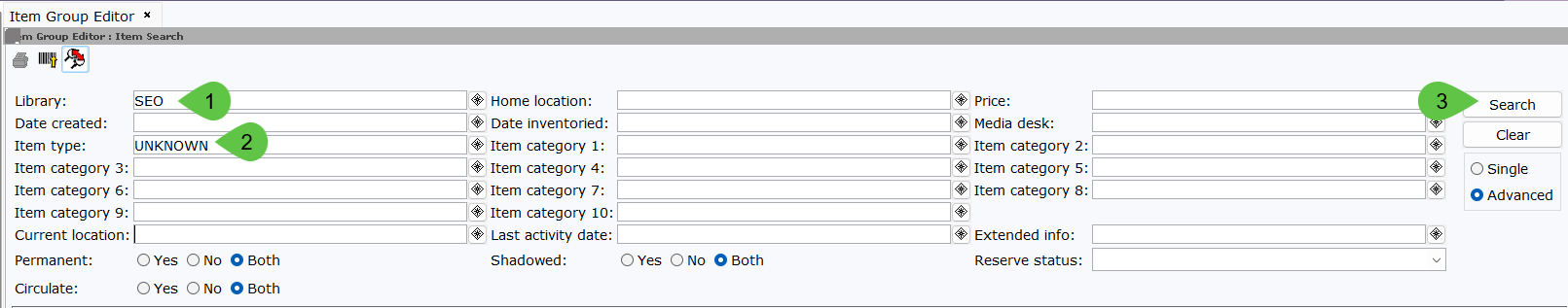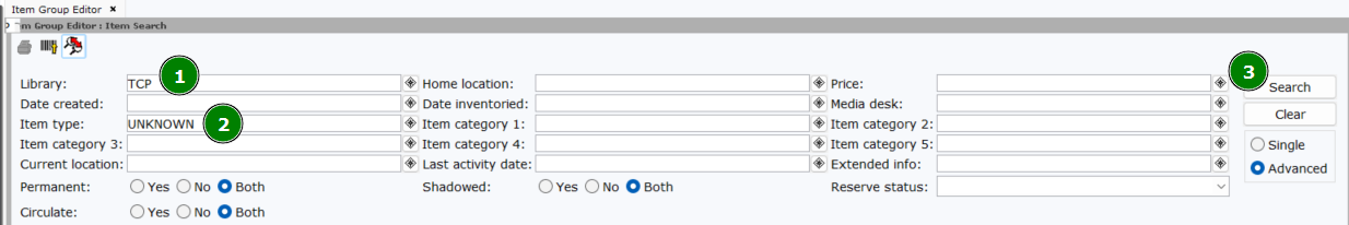 - In the Item Group Editor Wizard (TECH & MANAGER logins only), input your library code in the Library field.