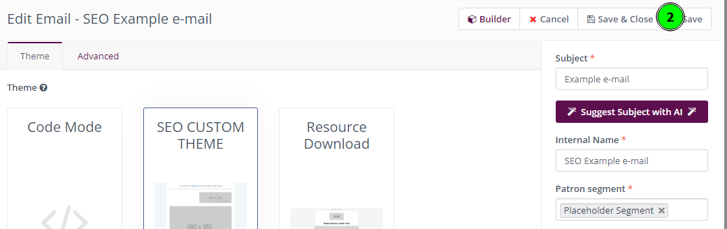 - After you create email in the builder and click on Save & Close.