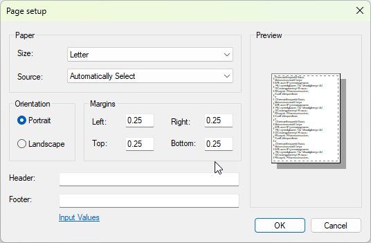 Wordpad was discontinued from Windows and removed in 2025. An alternative word processing application that can be used is Notepad. For notices, these are the margins and settings that work to avoid the notices "creeping" off the page. You must first set your report session path to use "notepad.exe" instead of "wordpad.exe". Please review article#69000214106 for more details and instructions.